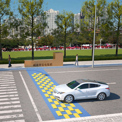 道路能量采集装置,又称减速带发电装置,是一种近年来刚刚兴起的新能源利用方式,是利用车辆在通过铺设在道路上的减速装置时所消耗的动能来发电的一种装置。此套装置产出的电能可供市政道路照明及交通信号灯用电,也可以做为分布式电源向电网供电。